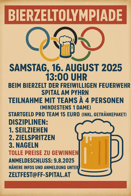 Ab 13:00 Uhr Spitaler Bierzeltolympiade mit Orts-, Vereins- und Feuerwehrwertung